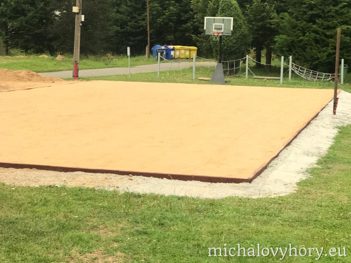 Rekonstrukce však ještě není u konce. V budoucnu bude potřeba písek dosypat a dorovnat povrch. Kromě toho plánujeme upravit i okolní terén, aby hřiště působilo upraveným a bezpečným dojmem.