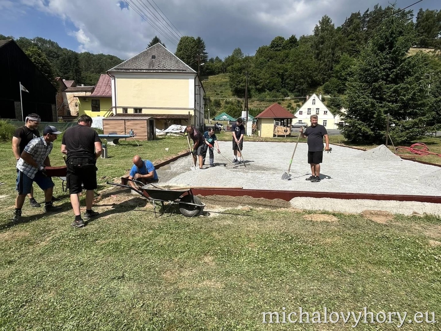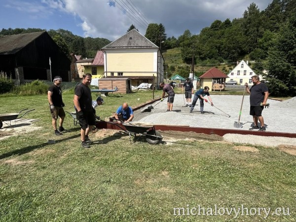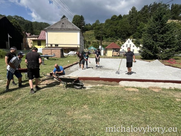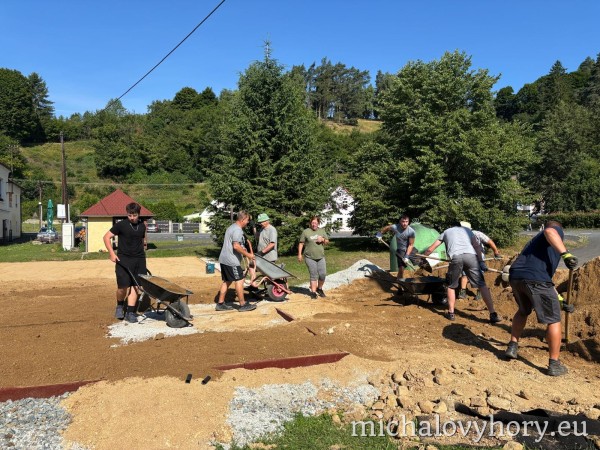 V naší obci Michalovy Hory probíhá od 14. června 2025 rekonstrukce dětského hřiště, které se stane příjemným místem pro volnočasové aktivity dětí i jejich rodičů. Práce probíhají postupně a většinu z nich zajišťují dobrovolníci z řad místních obyvatel během víkendů.