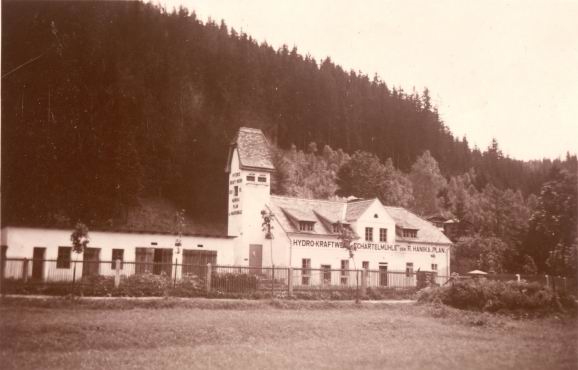 Dřívější Schartelův mlýn byl rekonstruován v roce 1929, byl vybaven Kaplanovou turbínou (62 k) firmy Storek z Brna, generátorem (65 kVA, 220/120 V) ze Škodových závodů v Plzni a transformátorem (75 kVA). Zatímco jiné firmy v té době se ubíraly cestou stejnosměrného proudu, Oswald Hanika se zaměřil na třífázový proud a společně s ostatními svými elektrárnami v okolí tím otevřel cestu k elektrizaci Plánska ze sítě 5 kV.